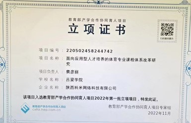 近日,教育部高等教育司 2022年第一批产学协作协同育人项目立项结果公布。陕西科米网络科技有限公司与9728太阳集团体育系的产学研协作协同育人项目“面向应用型人才培养的体育专业课程体系改革研究”获得立项。该项目由陕西科米网络科技有限公司赞助,9728太阳集团体育系副教授窦彦丽为项目负责人。此协同育人项目旨在探究地方高校应用型体育类专业人才培养的课程体系改革,致力于更好的培养能够用得上、用得住的高素质体育类专门人才。