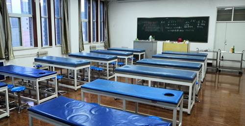 实验室使用面积115m2,仪器设备总值约9万元。主要仪器设备:按摩床、颈腰椎牵引床、欧姆龙按摩器、多功能康复仪(大力神)、低频脉冲治疗仪、电脑随机脉冲针疗仪、电子针疗仪、微电脑镇痛治疗仪、颈椎病治疗仪、神经肌肉治疗仪、高级心肺复苏训练模拟人、电动语言十四电动针炙模型、高负压真空拔罐、玻璃火罐、放松按摩器、远红外氧血循环机、运动创伤学的挂图等。