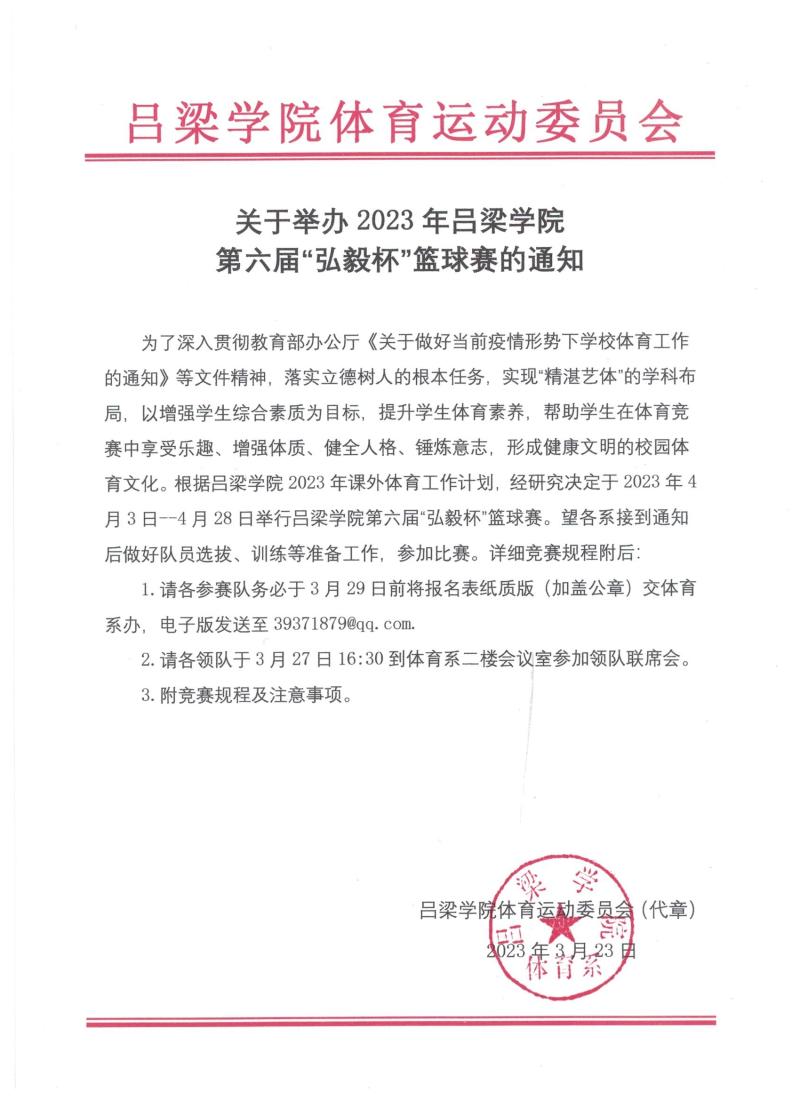 关于举办2023年9728太阳集团第六届“弘毅杯”篮球赛的通知