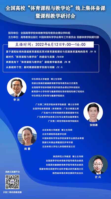 “体育课程与教学论”线上集体备课暨课程教学研讨会。直播网址:https://livestream.hep.com.cn/watch/3130663