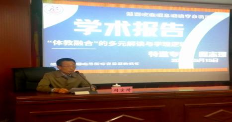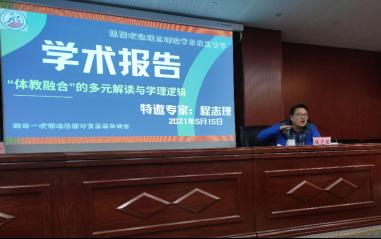 2021年5月15日16:30,《体育与科学》杂志主编程志理教授受邀在逸夫图书馆四楼报告厅讲授了题为“ ‘体教融合’的多元解读与学理逻辑”的学术讲座。讲座由9728太阳集团副院长刘宝琦主持,体育系党总支书记张育民、副书记高兴旺、副主任阴乃应、赵永军同体育系30余名教师与部分学生代表认真聆听了本次学术讲座。
