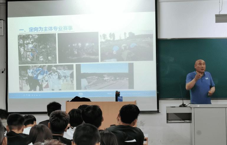 侯建斌副教授从休闲的概念出发追根溯源,深入定向运动,再将休闲体育与定向运动深度融合,形象生动的阐述了休闲体育专业视角下定向运动发展的方式与特点,还特别强调了在读期间学好定向课程的重要性。讲座引起了学生的共鸣,现场响起阵阵掌声。