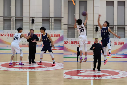 在观众们热切的期待中,迎来了本次开幕式的重要环节。学工部部长薛宇来到球场中央,为揭幕战开球,随着一声哨响,领导高高抛起篮球,篮球在空中划过一道优美的弧线,正式拉开了此次篮球比赛的序幕。这精彩的开球瞬间点燃了全场的热情,观众们欢呼声、掌声雷动,赛场氛围瞬间被推向高潮。