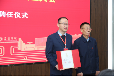 刘宝琦副院长向太阳集团9728校友会会长赵永军正式授牌,向副会长李建伟、孙海峰、张博、郭泉峰、宋安国、马太强、李艳江授旗,并为校友会名誉会长、会长、副会长、秘书长及副秘书长颁发聘书。