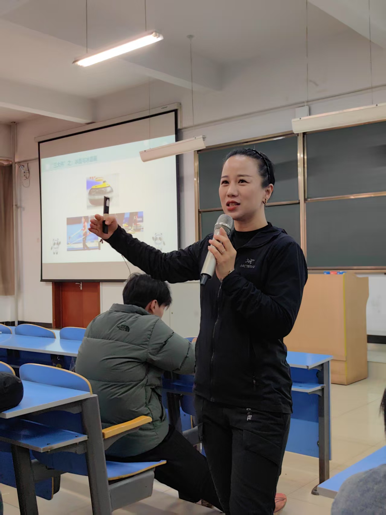 王黄城老师总结时表示,李老师的讲座不仅让大家了解了冰壶运动的历史与规则,更让大家感受到了这项运动所蕴含的智慧与魅力。王老师鼓励在场师生以此次讲座为契机,在未来的学习和生活中不断探索、成长,将冰壶运动中的团队精神和策略思维运用到实际生活中。最后,全场师生用热烈的掌声向李凌姝老师表达了衷心的感谢。李老师的讲座不仅让大家对冰壶运动有了更深入的了解,也为大家提供了一次难得的学习机会。她的分享不仅是一场知识的传递,更是一次智慧的洗礼。