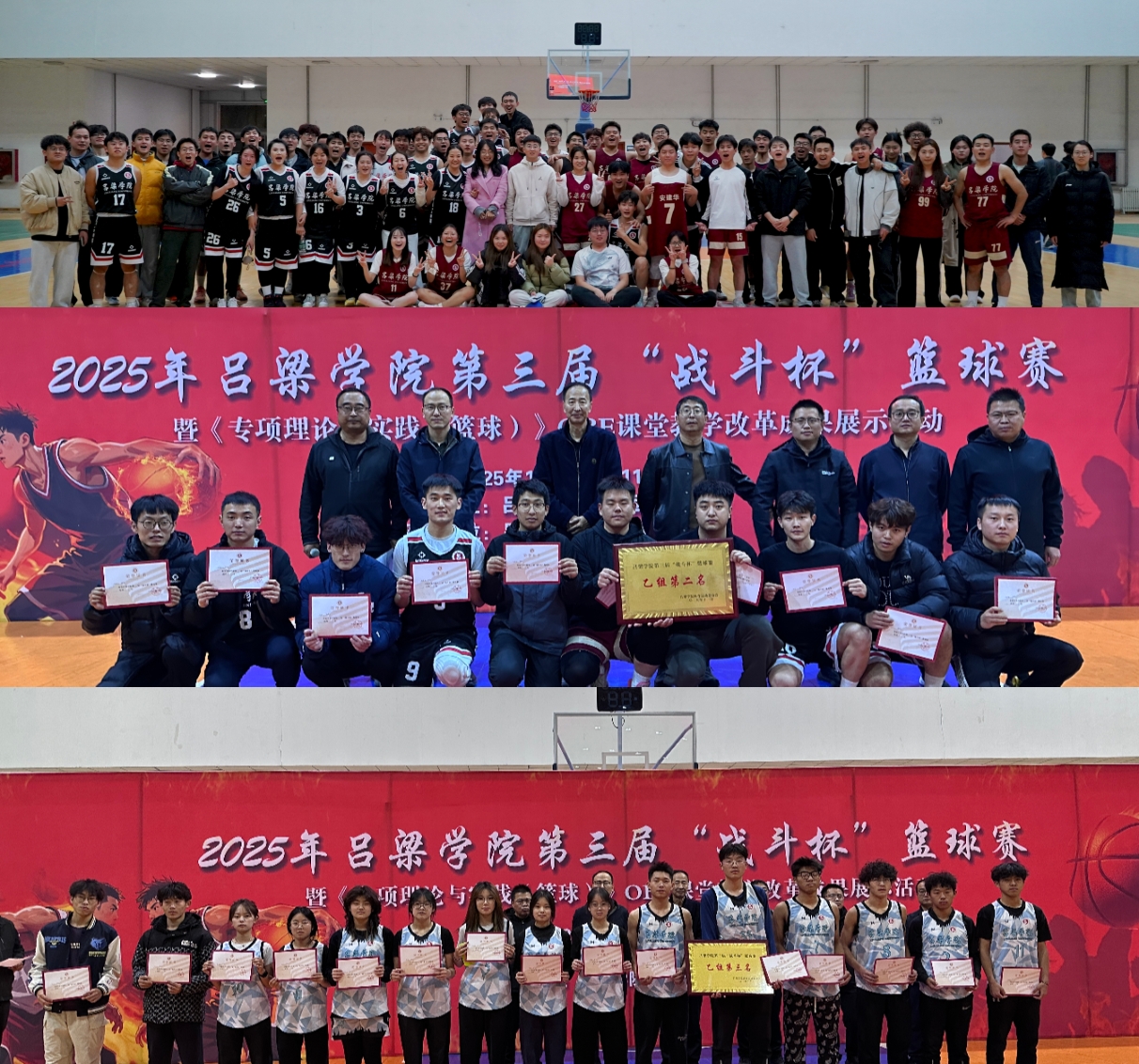 本次比赛是《专项理论与实践(篮球)》课程学生实践能力的提升与展示活动,赛事的裁判和记录台工作均由体育教育专业篮球专修的同学完成。赛事于10月30日正式开赛,历时13天,分为甲组与乙组两大组别,各参赛队伍在赛场上展现了顽强拼搏的体育精神。经过多轮激烈角逐,甲组奖项尘埃落定:资源与机械工程系斩获冠军,建筑与土木工程系荣获亚军,化工与材料工程系获得季军;乙组方面,体育教育专升本2501班摘得桂冠,体育教育专升本2502班夺得亚军,休闲体育2501班获得季军。